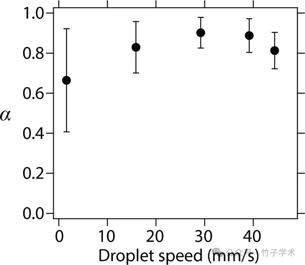 圖7是計算出的比例α與液滴速度之間的關(guān)系。