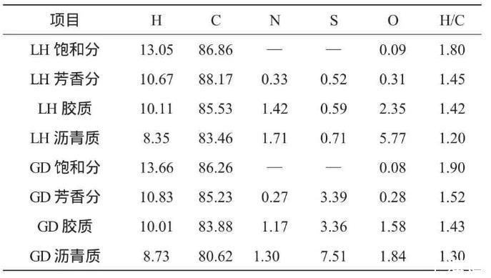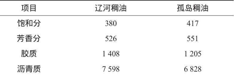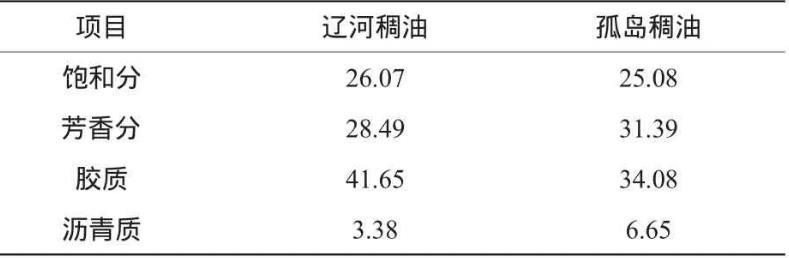 遼河和孤島兩種稠油組分的平均相對(duì)分子質(zhì)量和元素分析結(jié)果見表3、4。