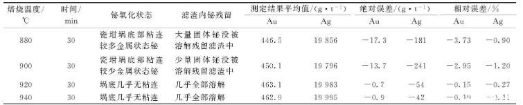 粗鉍是鉍精煉過程中的中間產(chǎn)物,粗鉍中含有鉛、銀、金、砷、銻、碲等[1],準(zhǔn)確測定粗鉍中金、銀含量對(duì)于指導(dǎo)生產(chǎn)和回收貴金屬具有重要意義。高鉍物料中金、銀測定一般沿用火試金重量法[2-3],主要是控制試料中鉍的含量,減少鉍對(duì)火試金的影響,為了減少合粒中鉍的殘留,消除鉍圈對(duì)合粒影響,控制樣品中鉍含量為0.50 g為宜[4-6],對(duì)于粗鉍來說,稱樣量太小,不能準(zhǔn)確測定樣品中金、銀含量。實(shí)驗(yàn)證明可以先把鉍焙燒氧化,然后用乙酸除去鉍氧化物中的鉍[7-8],再用火試金重量法測定物料中金、銀含量[5]。本方法精密度高,準(zhǔn)確度好,可用于粗鉍中金、銀含量的測定。