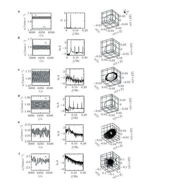 (4)目前對(duì)于液層界面張力梯度驅(qū)動(dòng)對(duì)流向湍流轉(zhuǎn)捩的研究仍不夠完善,在對(duì)超臨界轉(zhuǎn)捩階段的實(shí)驗(yàn)及數(shù)值模擬研究中觀察到了許多復(fù)雜的轉(zhuǎn)捩模式,但大多只是現(xiàn)象上的描述,并未總結(jié)出普遍的規(guī)律;對(duì)于流動(dòng)最終能否通向混沌暫無(wú)普適的判據(jù),流動(dòng)通向混沌過程中出現(xiàn)的諸如陣發(fā)、鎖頻等特殊的現(xiàn)象也尚未有更本質(zhì)的機(jī)理上的解釋??傊?,對(duì)于轉(zhuǎn)捩規(guī)律的深入理解,需要界面張力梯度驅(qū)動(dòng)對(duì)流這一非線性模型在理論上的進(jìn)一步發(fā)展,未來道阻且長(zhǎng)。