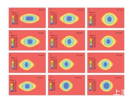 由計(jì)算流體力學(xué)后處理軟件所得到的液滴形態(tài)變化圖,可以看到液滴由最初的圓柱形變化成橢球形,再由橢球形變化成球形。與實(shí)驗(yàn)所得到的各時(shí)刻形態(tài)圖液滴變化趨勢相同,時(shí)間上略有誤差,可能是由于基質(zhì)導(dǎo)熱速率、加熱臺(tái)功率,以及室溫的影響。