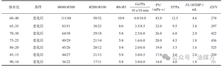 構(gòu)建的環(huán)保非水基鉆井液,適用油/水比范圍寬,抗污染能力強(qiáng),抗溫達(dá)180℃,可用于環(huán)保要求嚴(yán)格的作業(yè)區(qū)域。但是難以應(yīng)對(duì)溫度高于180℃井的作業(yè)需求,因此,仍需繼續(xù)研究抗溫性更強(qiáng)的環(huán)保乳化劑來(lái)滿足作業(yè)需求。