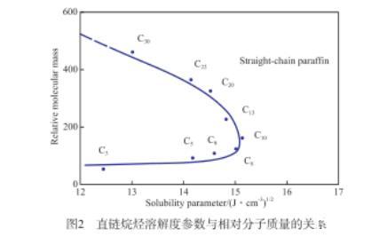 圖2直鏈烷烴溶解度參數(shù)與相對分子質(zhì)量的關(guān)系