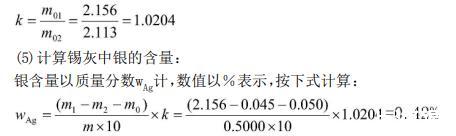 銀含量以質(zhì)量分?jǐn)?shù)wAg計,數(shù)值以%表示,按下式計算: