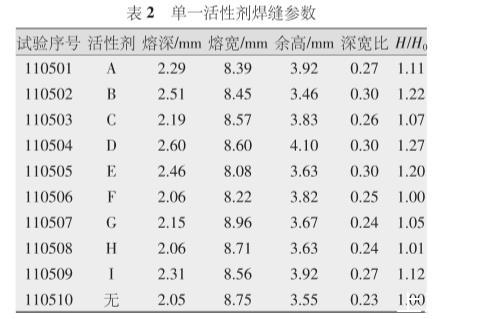 (4)活性劑成分不同,焊縫熔深增加程度也不同。