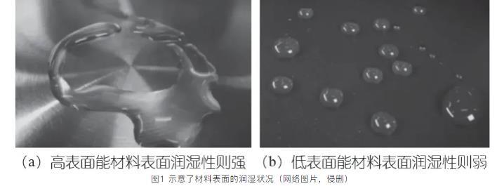 圖1示意了材料表面的潤濕狀況(網(wǎng)絡,侵刪)