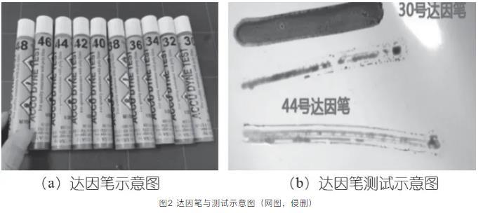 圖2達因筆與測試示意圖(網(wǎng)圖,侵刪)