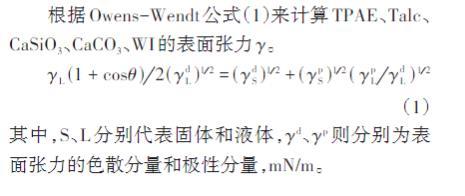 根據(jù)Owens-Wendt公式(1)來計(jì)算TPAE、Talc、CaSiO3、CaCO3、WI的表面張力γ。