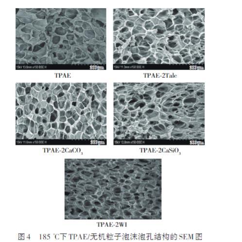 圖4 185℃下TPAE/無機粒子泡沫泡孔結(jié)構(gòu)的SEM圖