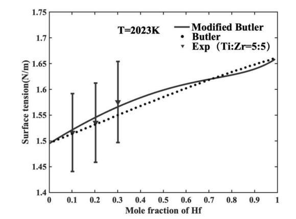 基于Butler模型對表相的偏摩爾過剩吉布斯自由能進(jìn)行修正以生成二元合金體系的表面張力模型;