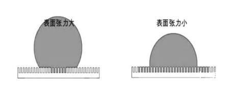 凡作用于液體表面,使液體表面積縮小的力,稱為液體表面張力。表面張力越低,材料濕潤表面的能力就越強(qiáng)。當(dāng)表面張力很高時(shí),液體會聚集在一起形成液滴。一般來說,溶劑型清洗劑比水基型清洗劑的表面張力更低,能夠滲透到密閉的區(qū)域,去清除污染物見圖1。