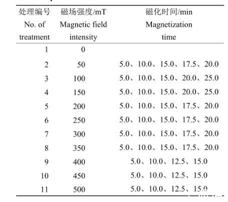 生物磁學(xué)(Biomagnetism)是生物學(xué)和磁學(xué)相互交叉的一門新型學(xué)科,主要探究生物磁效應(yīng)及磁現(xiàn)象、外磁場(chǎng)對(duì)生物體的影響。生物磁學(xué)方向的研究已吸引眾多領(lǐng)域相關(guān)專家的高度關(guān)注。生物磁學(xué)目前已經(jīng)普遍應(yīng)用于環(huán)境保護(hù)工程、農(nóng)業(yè)、林業(yè)等許多領(lǐng)域,且已取得巨大的收益,其中,在農(nóng)、林業(yè)領(lǐng)域采用最多的為磁化水。磁化水是指以一定的流速通過(guò)磁場(chǎng),受磁力線切割使自身的理化性質(zhì)發(fā)生變化的水或水溶液。