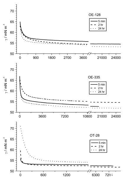 圖 1 1:1 提取物的動(dòng)態(tài)表面張力曲線。