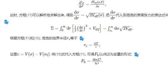 其中,ε為偽真空與真真空的單位體積自由能密度之差;Σ是泡壁的表面能量密度,即兩相界面的表面張力。