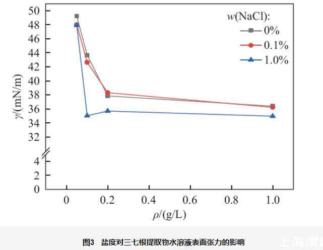 不同質(zhì)量濃度、pH、鹽度對(duì)三七根提取物水溶液表面張力的影響(二)