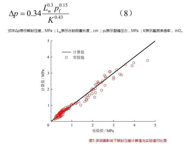 式中Δp表示解封壓差,MPa;Lw表示水封段塞長(zhǎng)度,cm;pf表示裂縫壓力,MPa;K表示基質(zhì)滲透率,mD。