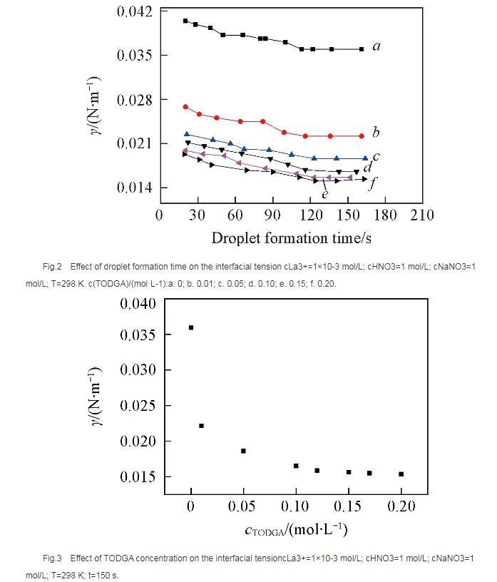 2.1不同TODGA濃度下液滴形成時(shí)間對(duì)界面張力的影響