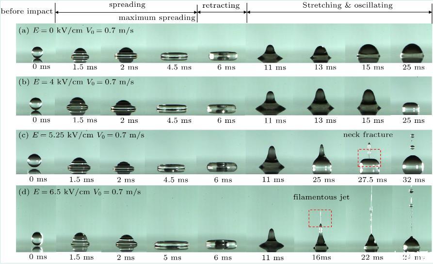 可視化實(shí)驗(yàn)方法研究電場作用下液滴撞擊表面的動態(tài)行為(二)