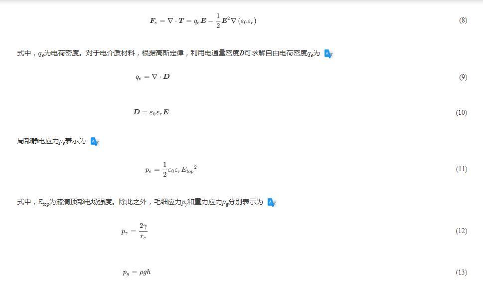 除此之外,液滴底部在不同模式下的動力學行為相同,如圖4(b)所示。液滴底部會被誘導負電荷,此時其受到垂直向下的靜電力Fel,靜電力和粘附力Fa同時作用于液滴的底部,因此它們既不促進也不阻礙液滴的拉伸,其作用本質(zhì)是使液滴附著在下極板上,防止其反彈。
