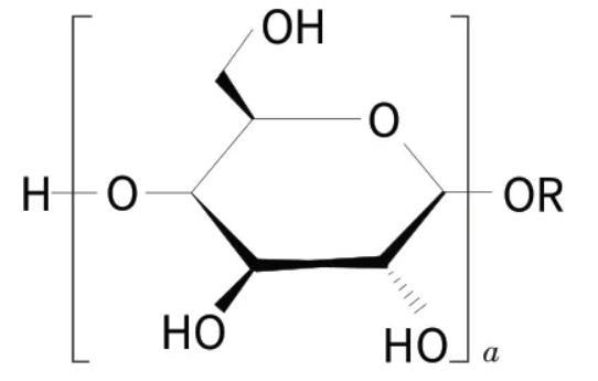 烷基糖苷(APG,結(jié)構(gòu)式如下,其中a是平均聚合度)是一類可生物降解的天然非離子表面活性劑,被國際公認(rèn)為“綠色”功能表面活性劑。烷基糖苷具有優(yōu)良的配伍性能,起泡性好(泡沫豐富細(xì)膩),耐強(qiáng)堿和電解質(zhì),有良好的增稠能力,與皮膚相容性好,無毒,刺激性極低。