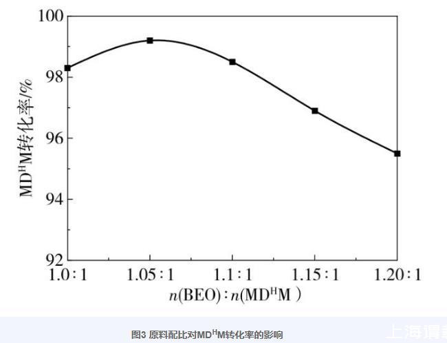 圖3原料配比對MDHM轉(zhuǎn)化率的影響