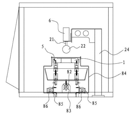 [0013]其有益效果是,在使用的時(shí)候,可以在清洗槽當(dāng)中放滿清洗液,清洗液通常采用清水即可,或者也可以采用其它可將油脂從樣品當(dāng)中洗下來(lái)的液體。通過(guò)樣品固定單元可以將板材樣品固定住,然后做升降運(yùn)動(dòng),即將樣品向清洗液當(dāng)中做若干次的浸沒(méi)操作,從而將樣品當(dāng)中的油清洗下來(lái)。