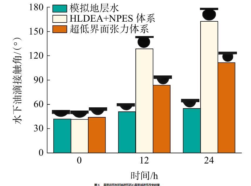 圖5表面活性劑對(duì)油濕性巖心表面潤(rùn)濕性改變結(jié)果