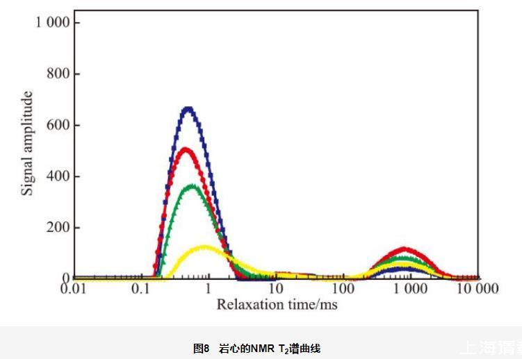 5)經(jīng)復(fù)合表面活性劑體系處理后,巖心含水飽和度由77.4%降至8.10%,巖心含油飽和度由66.7%降至11.25%;巖心中多孔介質(zhì)經(jīng)復(fù)合體系處理后,氣相滲透率由水侵污染后的23.09×103μm2恢復(fù)到53.59×103μm2,由油侵污染后的26.06×103μm2恢復(fù)到52.21×103μm2,由液侵污染后的30.20×103μm2恢復(fù)到54.98×103μm2。通過巖心自發(fā)滲吸實(shí)驗(yàn)、NMR實(shí)驗(yàn)以及巖心流動(dòng)實(shí)驗(yàn)得出復(fù)合體系能夠有效預(yù)防巖心液侵和有效解除巖心液侵傷害。