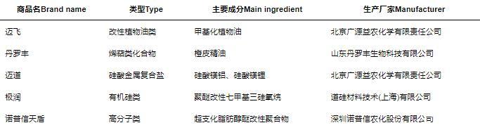 表1供試助劑產(chǎn)品信息