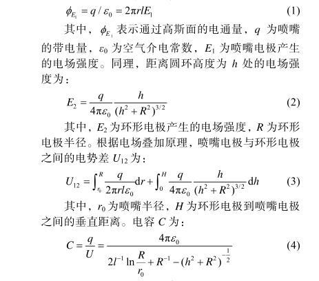 其中,r0為噴嘴半徑,H為環(huán)形電極到噴嘴電極之間的垂直距離。電容C為: