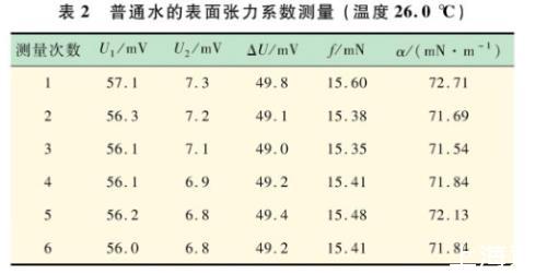 表2普通水的表面張力系數(shù)測(cè)量(溫度26.0℃)