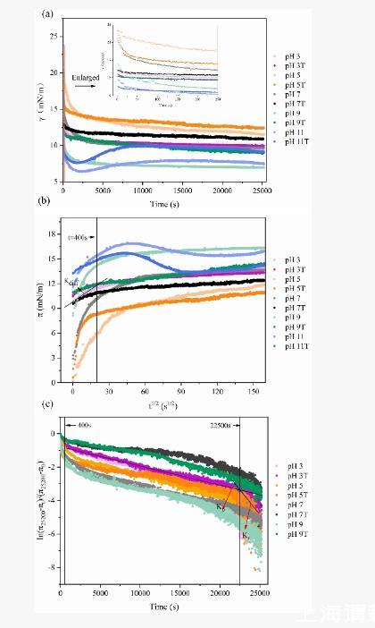 預(yù)實(shí)驗(yàn)驗(yàn)證蛋白質(zhì)在界面的吸附行為:通過動(dòng)態(tài)界面張力曲線(γ-t)判斷是否達(dá)到平衡(斜率趨近于0),若長時(shí)間不穩(wěn)定(如持續(xù)下降),可能是蛋白質(zhì)未完全溶解或溶液中有雜質(zhì)。