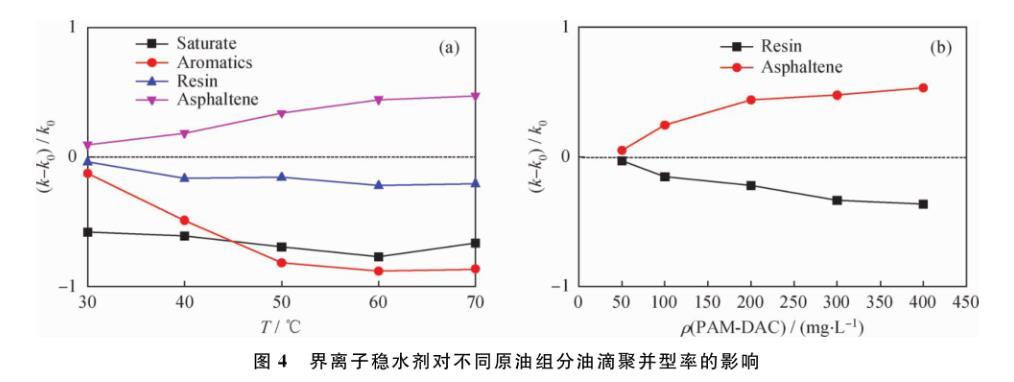 2.2.2兩性離子清水劑對(duì)原油組分油滴聚并行為的影響