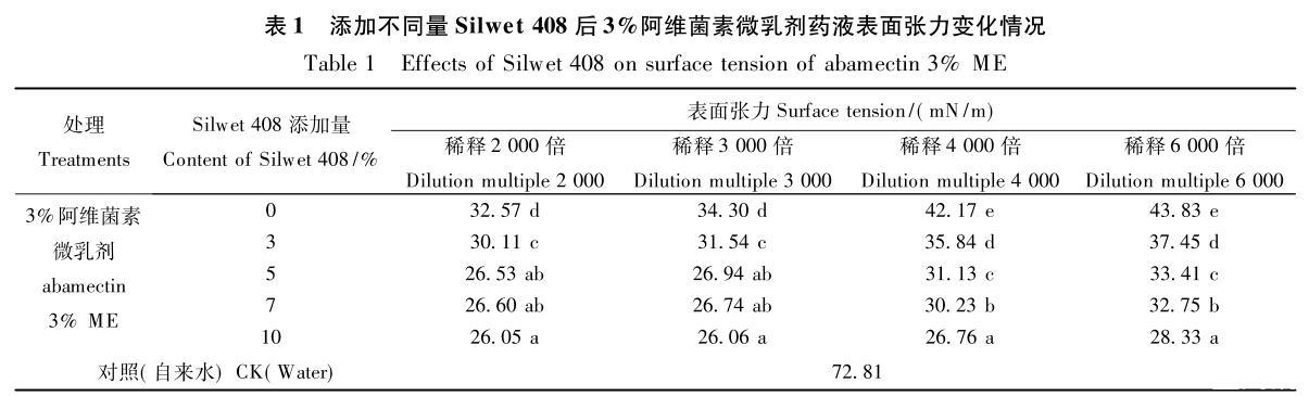 添加不同量阿維菌素Silwet 408對阿維菌素微乳劑藥液表面張力的影響——結(jié)果與分析、結(jié)論