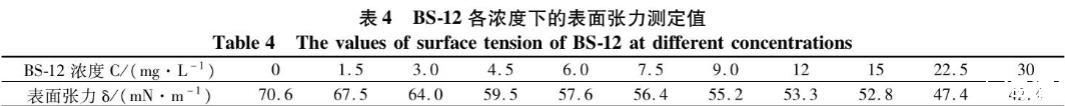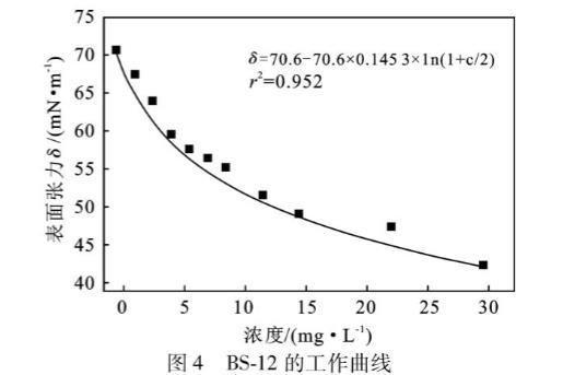 十二烷基二甲基甜菜堿(BS-12)是一種兩性表面活性劑,性能溫和,在產(chǎn)品配方中起性能調(diào)節(jié)和降低刺激性的作用,可用作纖維柔軟劑、金屬表面加工助劑、抗靜電劑等產(chǎn)品中。BS-12試樣的表面張力測定結(jié)果見表4。