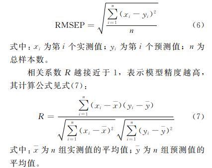 注:RMSEP-均方根預(yù)測誤差;R-相關(guān)系數(shù)