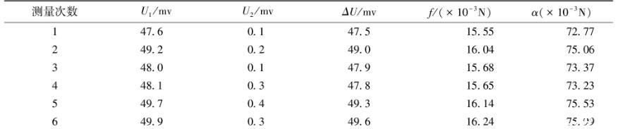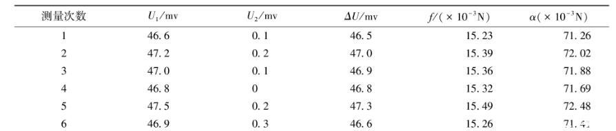 用原有的金屬吊環(huán)測(cè)量純水在25℃時(shí)的液體表面張力系數(shù)的數(shù)據(jù)見(jiàn)表2。