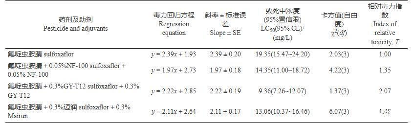 表4氟啶蟲胺腈添加助劑對蘋果黃蚜的毒力及增效作用