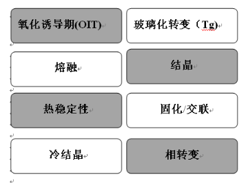 差示掃描量熱儀可檢測的材料性質: