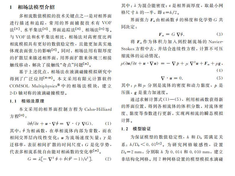 基于上述優(yōu)點(diǎn),相場(chǎng)法在液滴碰撞模擬研究中得到了廣泛應(yīng)用。本文采用有限元計(jì)算軟件COMSOL Multiphysics