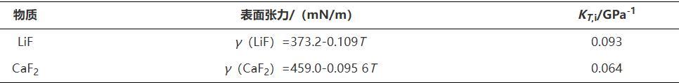 表1純組元LiF與CaF2的標(biāo)準(zhǔn)表面張力值