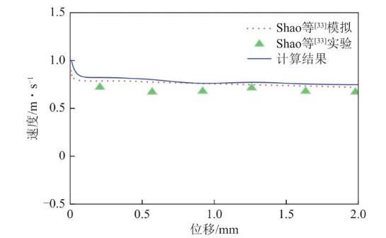圖4 顆粒速度-位移曲線的實驗與模擬結(jié)果
