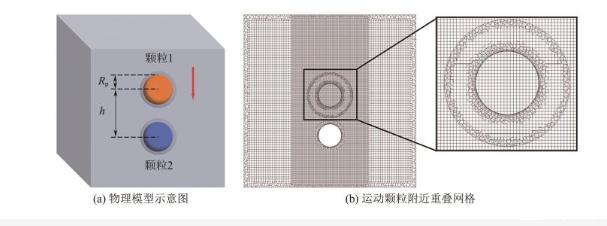 圖2 物理模型示意圖與運動顆粒附近重疊網(wǎng)格