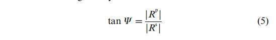橢偏儀是一種研究表面和薄膜的技術(shù),其基礎(chǔ)是利用偏振光束從界面或薄膜反射或透射時(shí)發(fā)生的偏振變換。33在橢偏儀中,測(cè)量?jī)蓚€(gè)量J和D, 式中,J是角,其切線(xiàn)是全反射系數(shù)大小的比率,由下式給出: