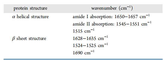 表2。 α螺旋和β片的主帶位置特征及酰胺Ⅰ和酰胺Ⅱ的紅外振動(dòng)