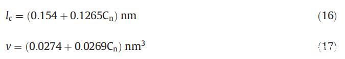 式中,v是視為流體且不可壓縮的疏水鏈的體積,lc是單體疏水鏈的長度,可使用Tanford公式計(jì)算[53]: