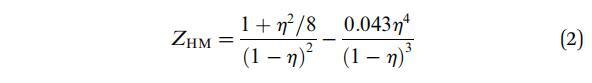 式中,η是表面堆積分?jǐn)?shù),它可以用顆粒數(shù)密度(p)和單個(gè)顆粒的體積直徑(d)表示為η=(π/4)pd2。對于我們的實(shí)驗(yàn),η介于0和0.91之間。ZHM的相應(yīng)值介于1和96之間。