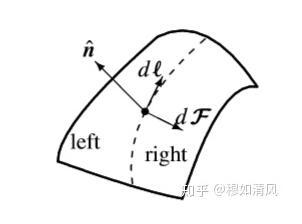 這是一個(gè)彎曲的液面表面,左側(cè)(left)是其原來(lái)的面積,右側(cè)(right)是擴(kuò)展的部分,dl即單位長(zhǎng)度,n指示曲面的法向量方向。這樣就可以很清晰地看出來(lái)了,使表面擴(kuò)展的力是沿著表面的切線方向的。