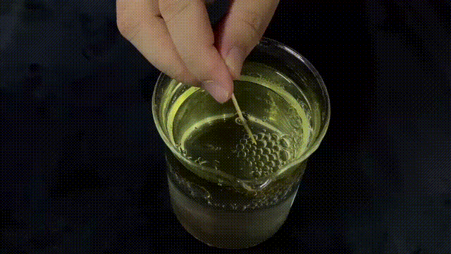不過(guò)要小心,如果牙簽觸碰到了水滴的底部,水滴就會(huì)破裂下沉