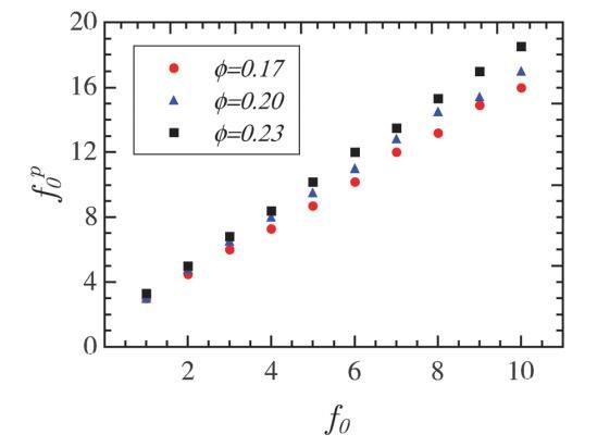 由于點(diǎn)偶極子模型的簡單性,值得尋找兩個(gè)模型之間的對應(yīng)關(guān)系。為此,我們確定了一組f0在三個(gè)不同面積分?jǐn)?shù)下的有效相互作用強(qiáng)度f p0。對于感興趣的參數(shù)范圍,可以在圖10中看到f p0和f0之間的關(guān)系。該圖有助于選擇適當(dāng)?shù)膄 p0,以便通過僅基于更簡單的點(diǎn)偶極子模型進(jìn)行模擬來計(jì)算單層的結(jié)構(gòu)特性?;蛘?,如果實(shí)驗(yàn)對相關(guān)函數(shù)由點(diǎn)偶極子近似建模,則sffi ep的值可以使用根據(jù)該圖估計(jì)的相應(yīng)f0計(jì)算。